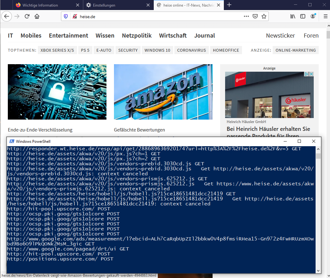 Sobald eine Seite angesurft wird, zeigt der Proxy alle HTTP Anfragen an
