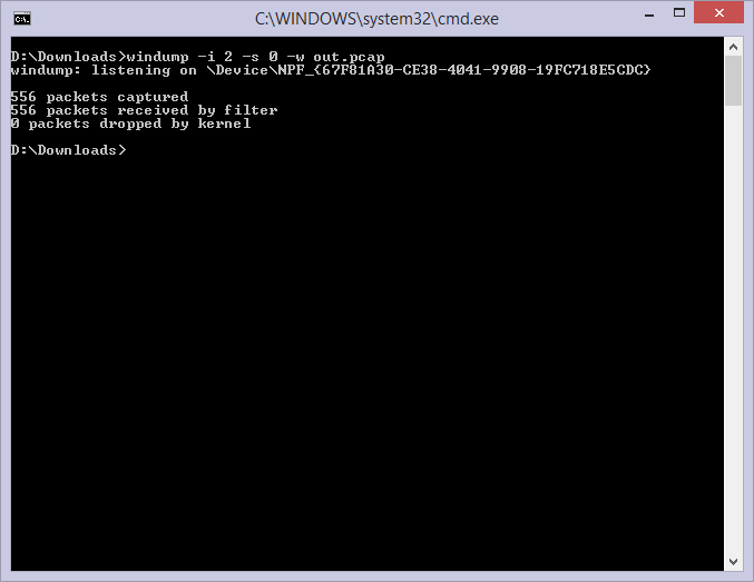 windump -i 2 -s 0 -w out.pcap